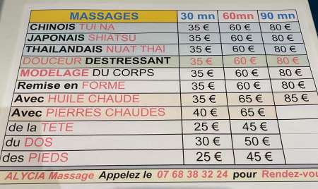 massage du dos 30€ 50€